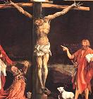 Rare indeed. But in fact there is one artist who presents the broken and beaten body of Christ on the cross and that is Matthias Grünewald whose Isenheim Altarpiece in Colmar focuses on this aspect of the story. But even here the violence done to Christ's body is to be seen only when the altarpiece is closed. When it is opened up it reveals the affirmative images of the joyous annunciation of Mary, Jesus' happy infancy with a concert of angels, and an awe-filled scene of the ascension of Jesus to the "right hand of God." Such a context is important when one is showing such a powerfully negative image.