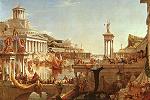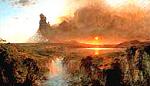 When his early landscapes studies attracted little notice he realized that 19th-century Anglo-Saxons loved nothing so much as a sermon. Thus his major attempt to storm the fortress of high art was the ambitious suite of paintings The Course of Empire. This five-part series tells the story of a civilization's rise, decline and fall with imagery that inspired such popular 20th century artists as Cecil B. DeMille, with his Biblical epics, and Steven Spielberg, in his sci-fi blockbusters. (The National Gallery of Art has Cole's subsequent series The Voyage of Life.)
