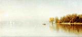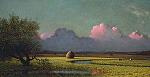 In this initial stage of the school, as spectacularly exhibited in the catalogue of American Sublime, there was an attempt to overwhelm the viewer with awesome views of waterfalls, mountains and jungles. Artists of the next "Luminist" phase like John Frederick Kensett, Martin Johnson Heade and Gifford, while not eschewing spectacular scenes entirely, thought of their art as more serene. Aiming through subtle effects of light, color and atmosphere to evoke a more thoughtful, quieter version of the sublime. Think Mozart not Wagner.